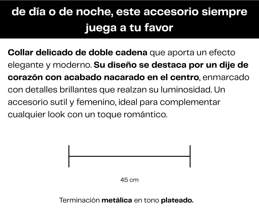 Válido para este producto y todos los de la categoría: Accesorios, Accesorios -> Collares, Accesorios -> Brazaletes, Accesorios -> Aros, Accesorios -> Fajas y cinturones, Accesorios -> Carteras, Accesorios -> Anillos, Accesorios -> Gorras, Accesorios -> Pañuelos.