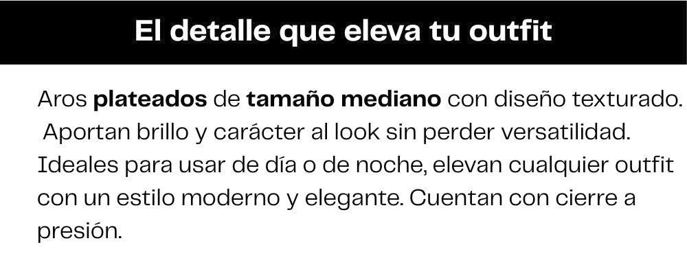 Válido para este producto y todos los de la categoría: Accesorios, Accesorios -> Anillos, Accesorios -> Aros, Accesorios -> Brazaletes, Accesorios -> Carteras, Accesorios -> Collares, Accesorios -> Lentes.
