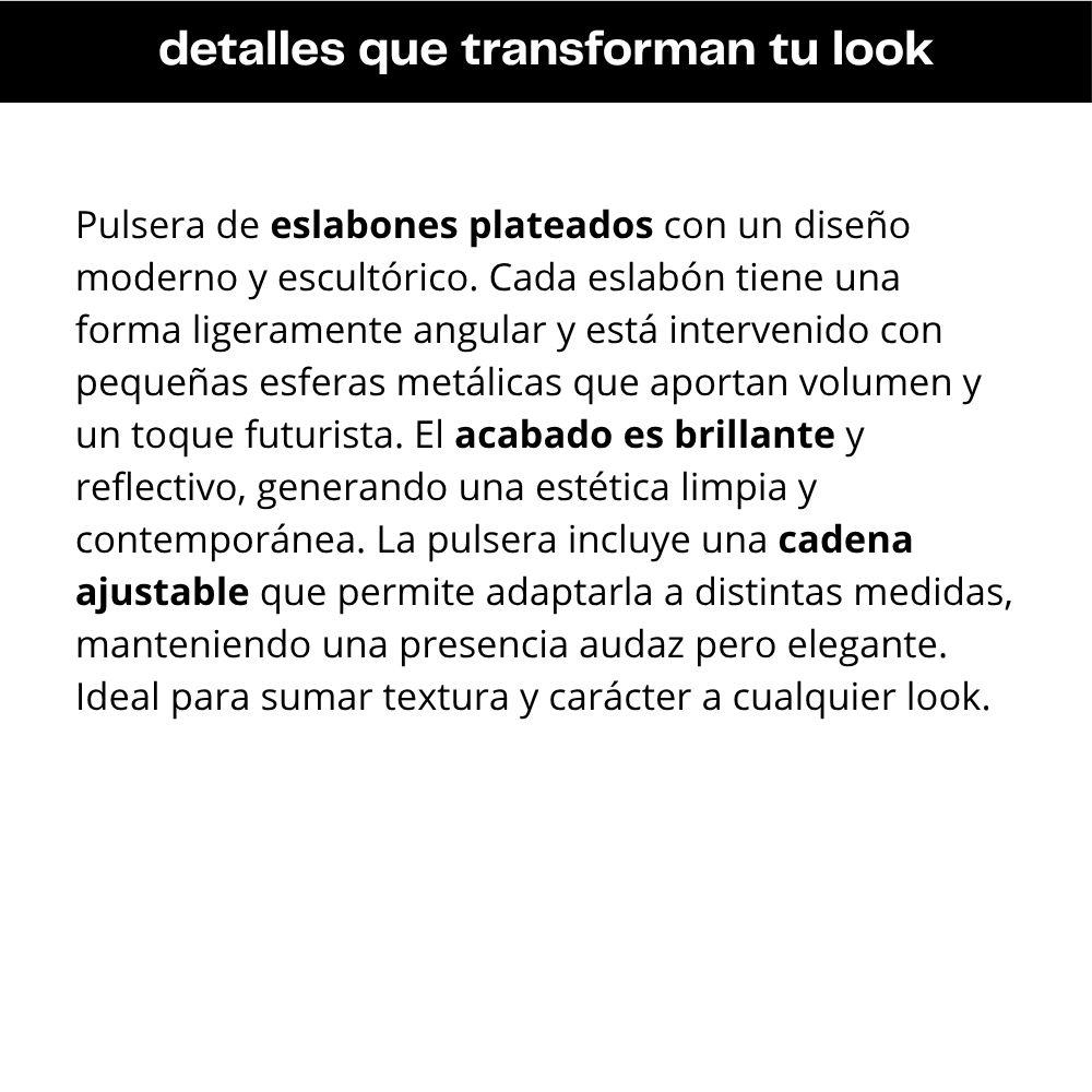 Válido para este producto y todos los de la categoría: Accesorios, Accesorios -> Anillos, Accesorios -> Aros, Accesorios -> Brazaletes, Accesorios -> Carteras, Accesorios -> Collares, Accesorios -> Lentes.