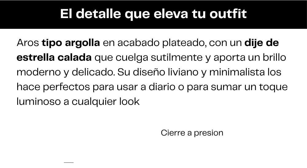 Válido para este producto y todos los de la categoría: Accesorios, Accesorios -> Anillos, Accesorios -> Aros, Accesorios -> Brazaletes, Accesorios -> Carteras, Accesorios -> Collares, Accesorios -> Lentes.